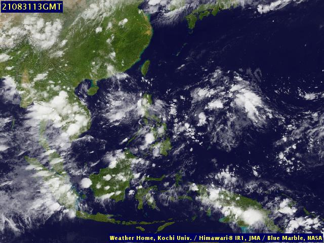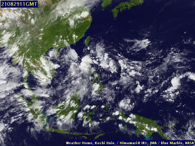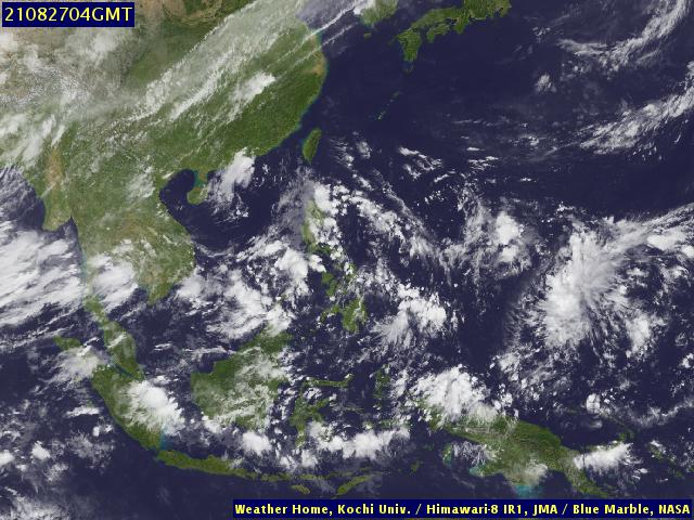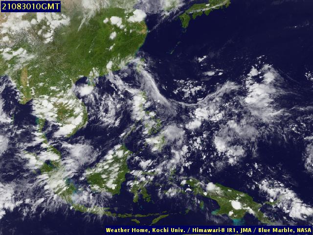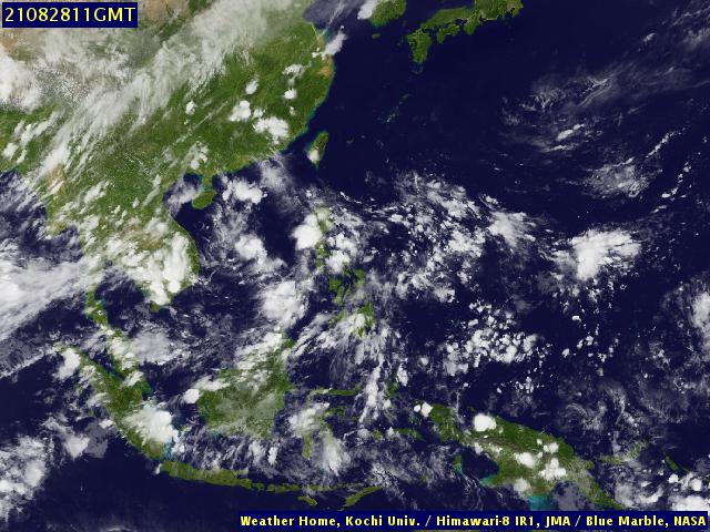 ภาพถ่ายจากดาวเทียม Himawari-8 แสดงให้เห็นว่าอิทธิพลจากลมมรสุมตะวันตกเฉียงใต้ที่พัดผ่านทะเลอันดามัน ประเทศไทยและอ่าวไทยรวมถึงร่องมรสุมที่ผ่านพาดบริเวณตอนกลางของประเทศไทย