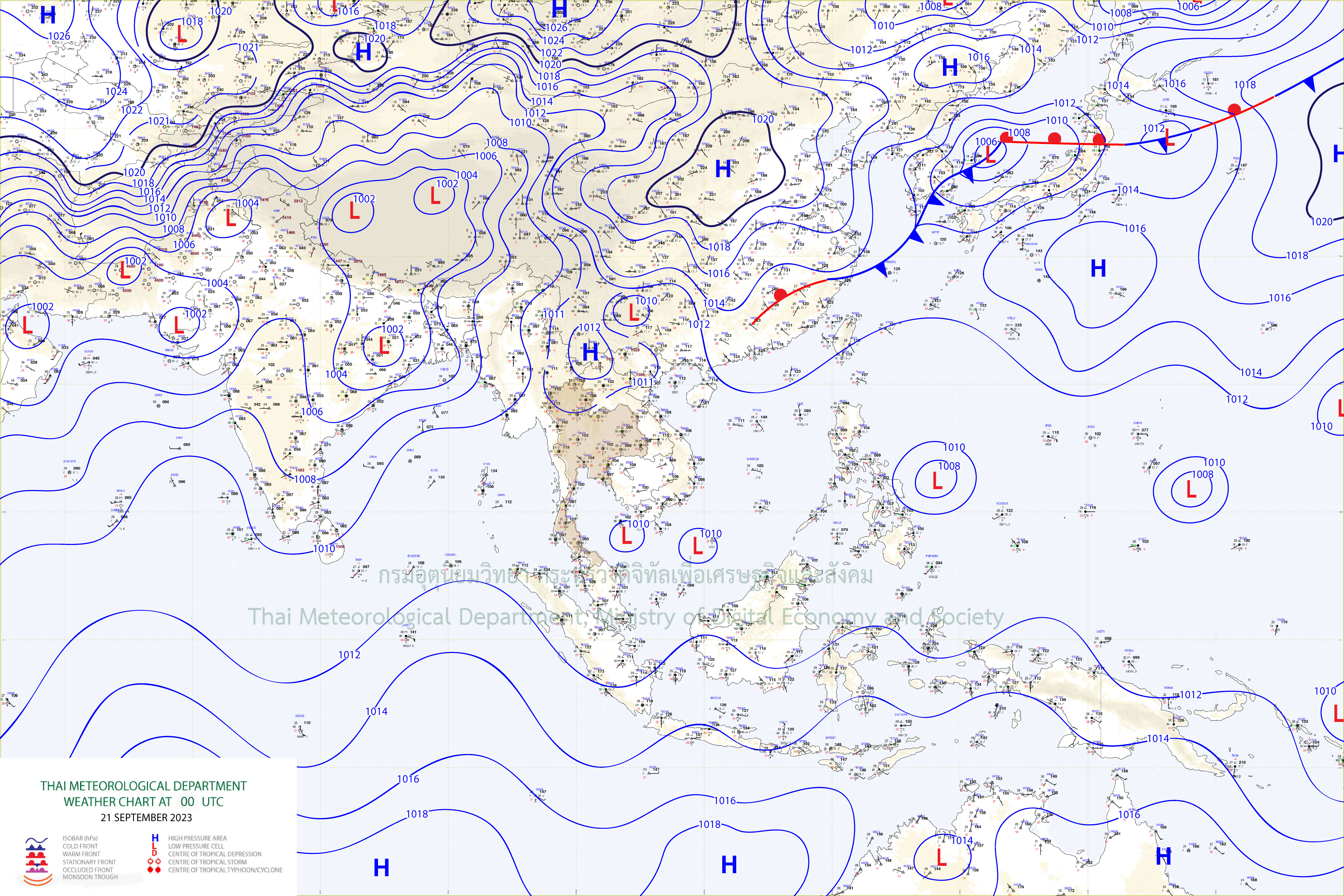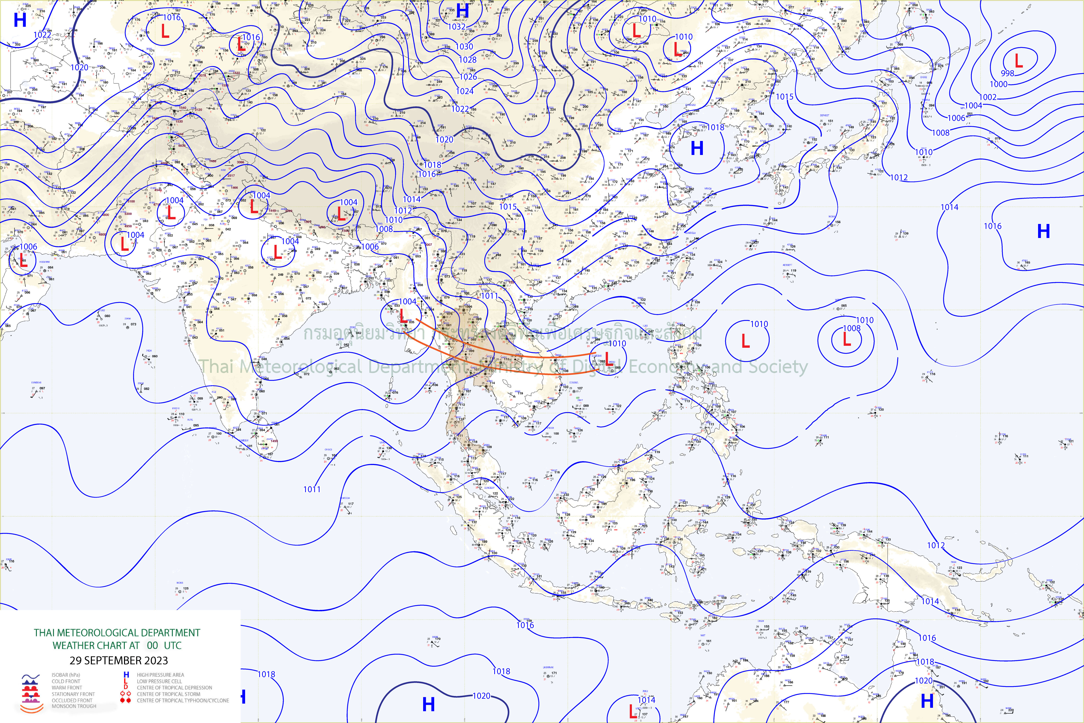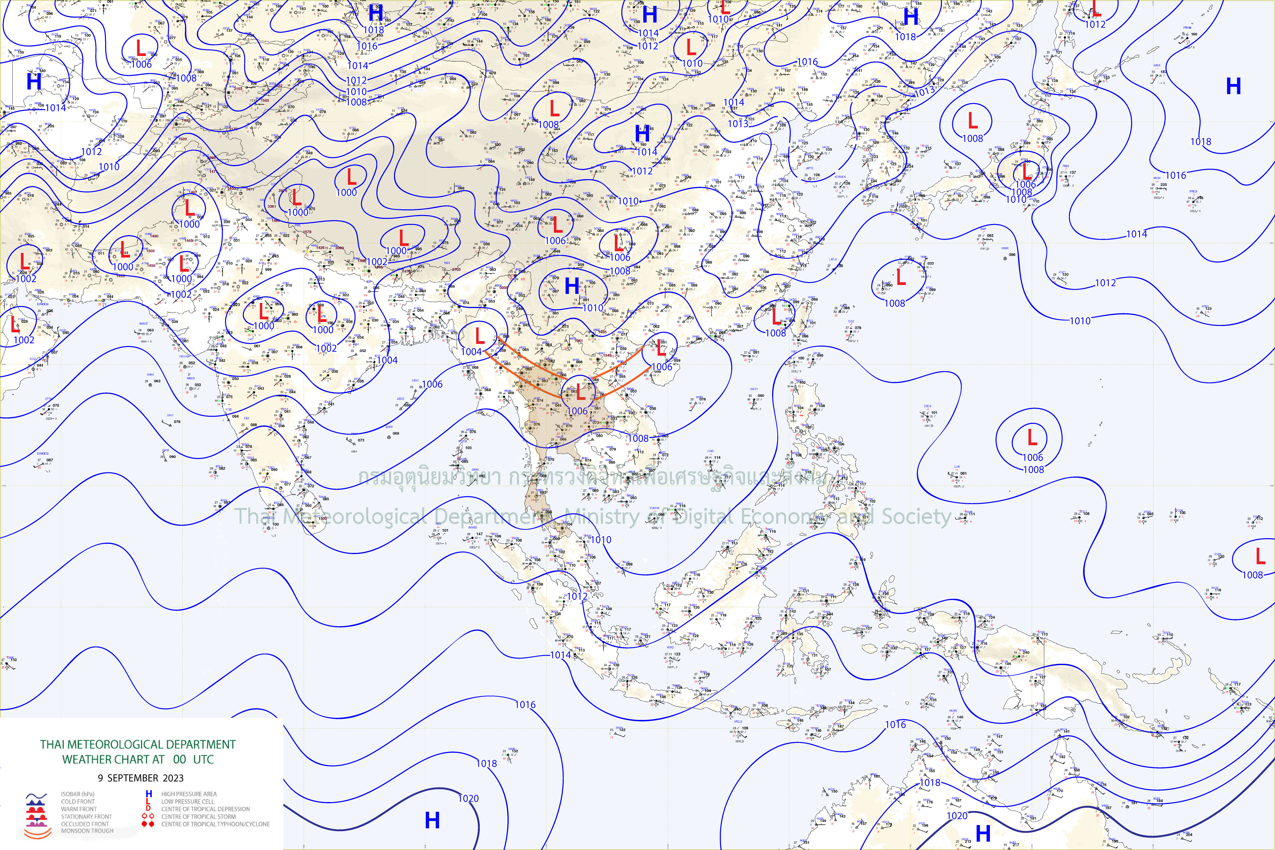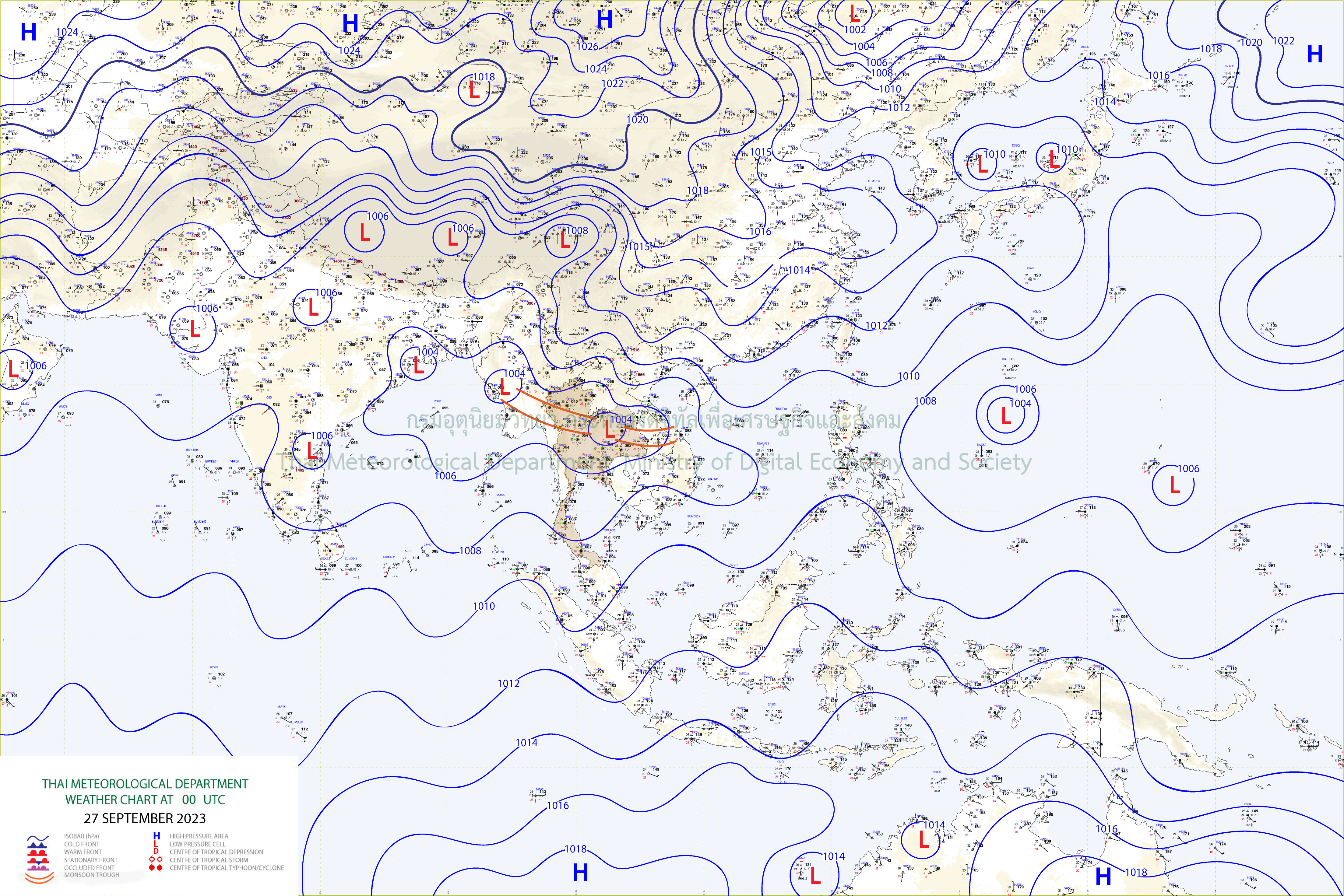 เดือนกันยายน 2566 ประเทศไทยได้รับอิทธิพลจากร่องมรสุม (สัญลักษณ์