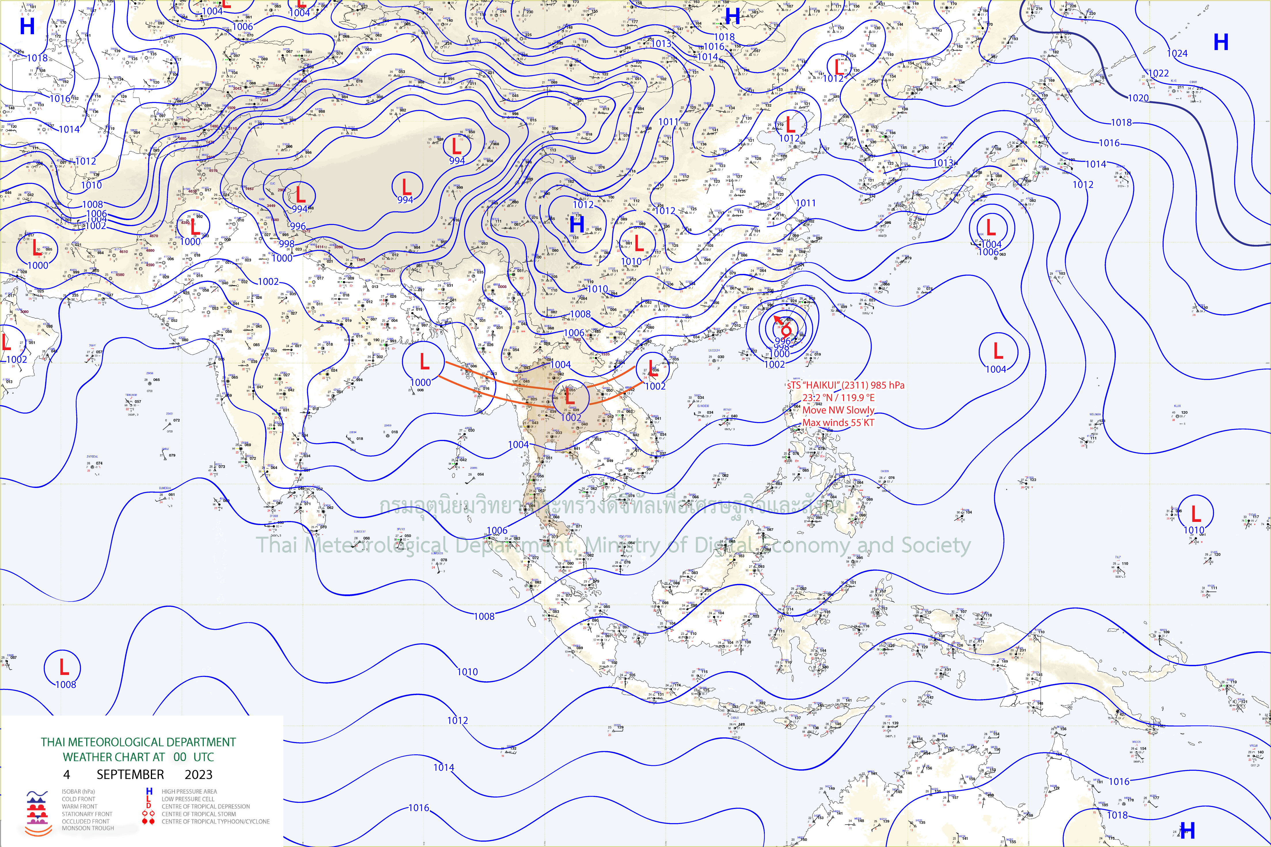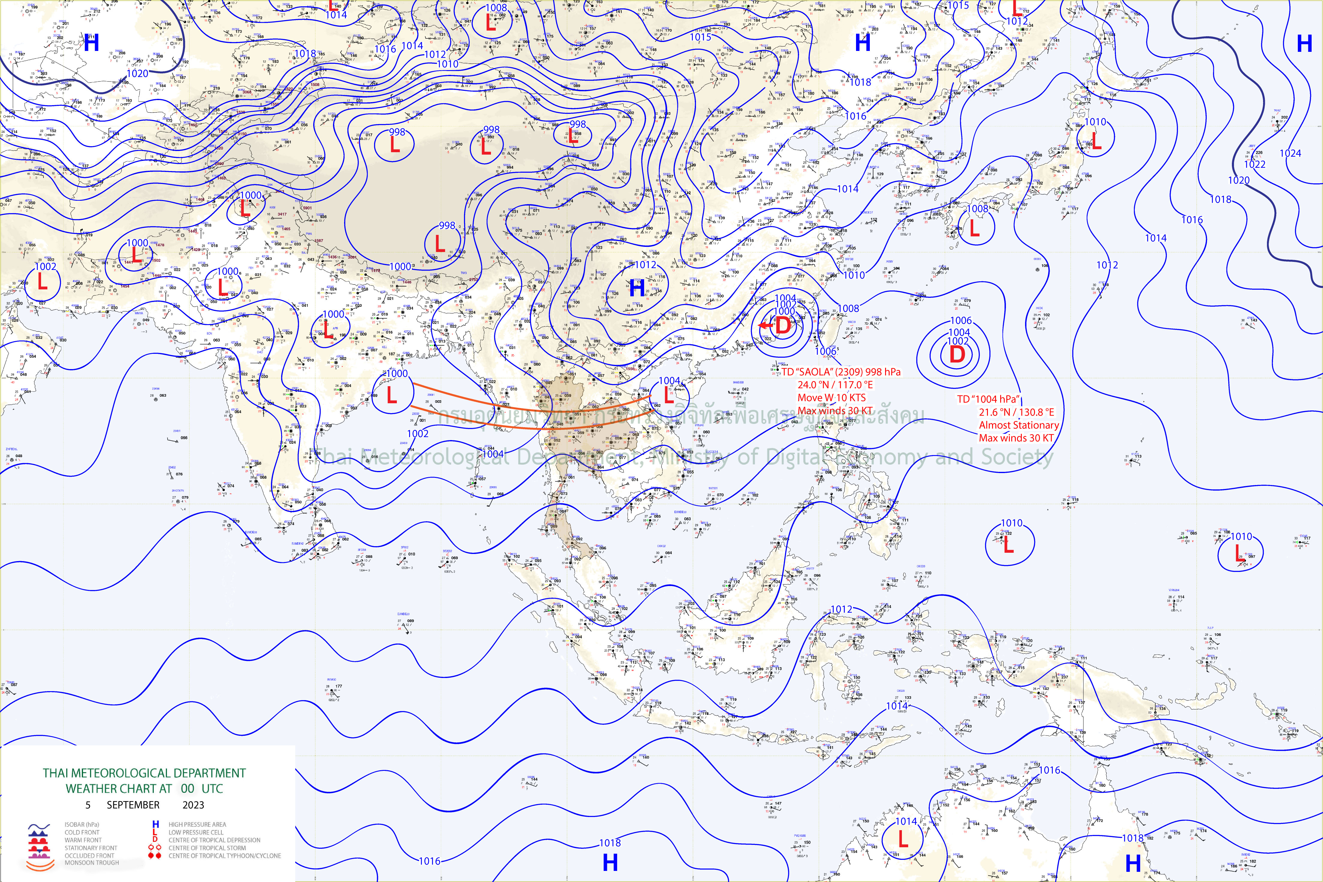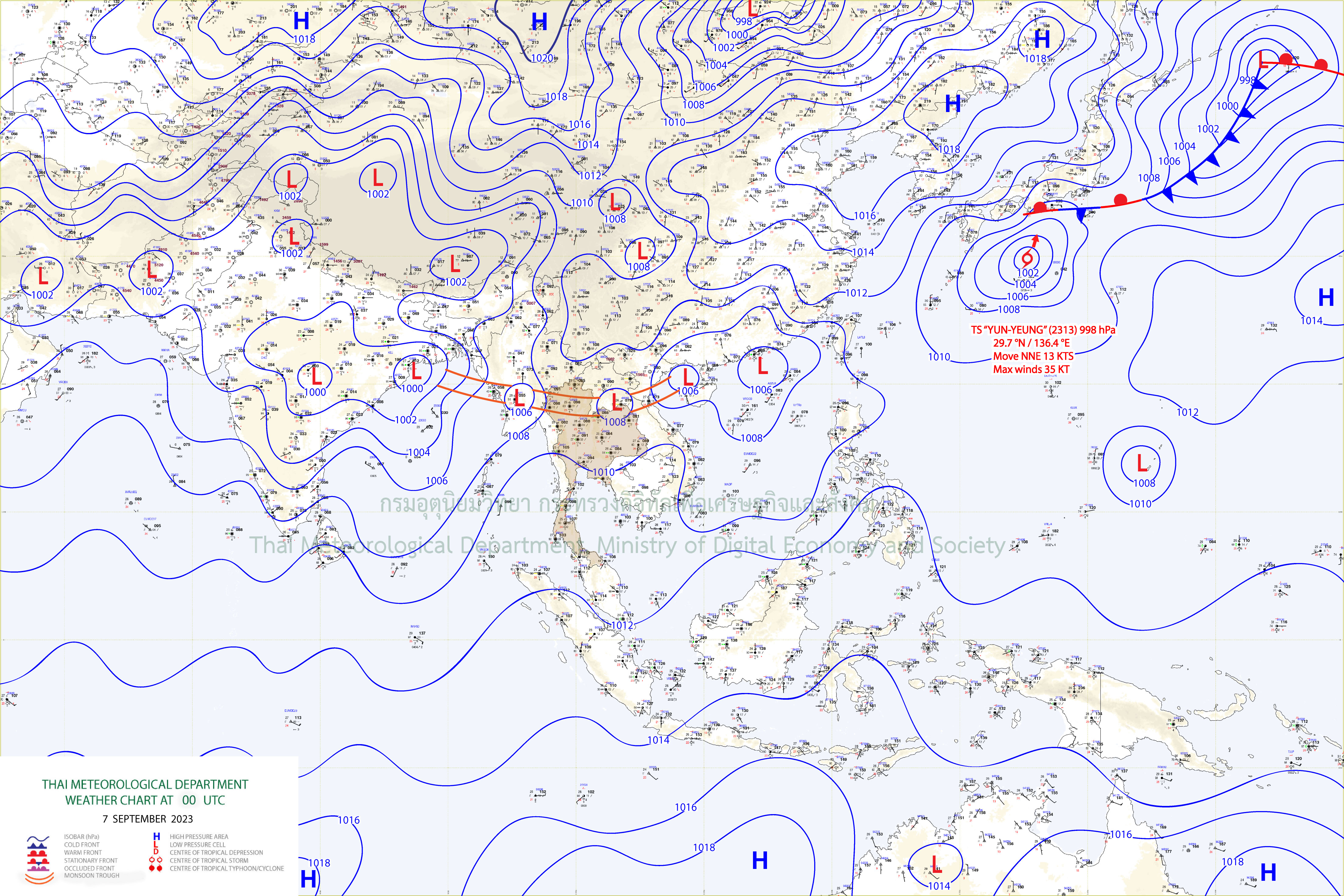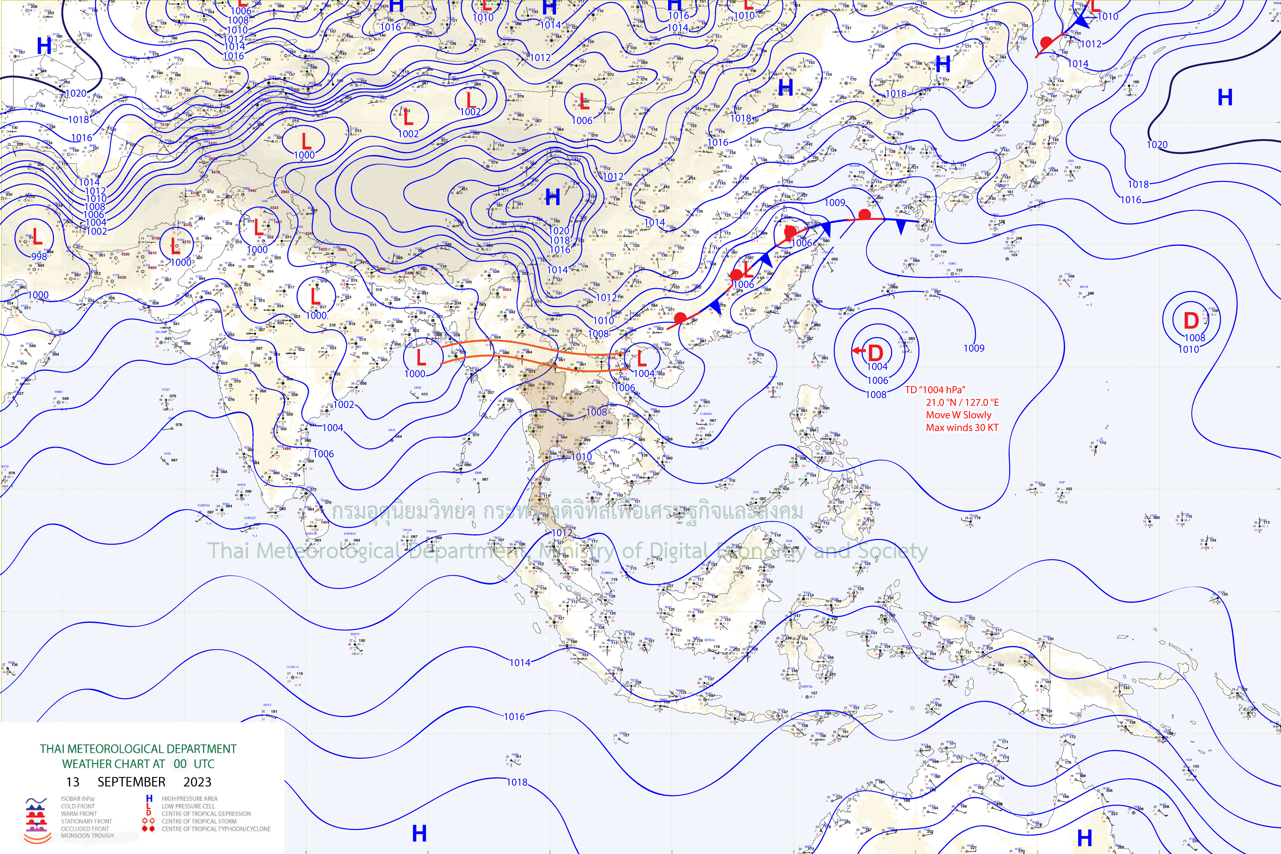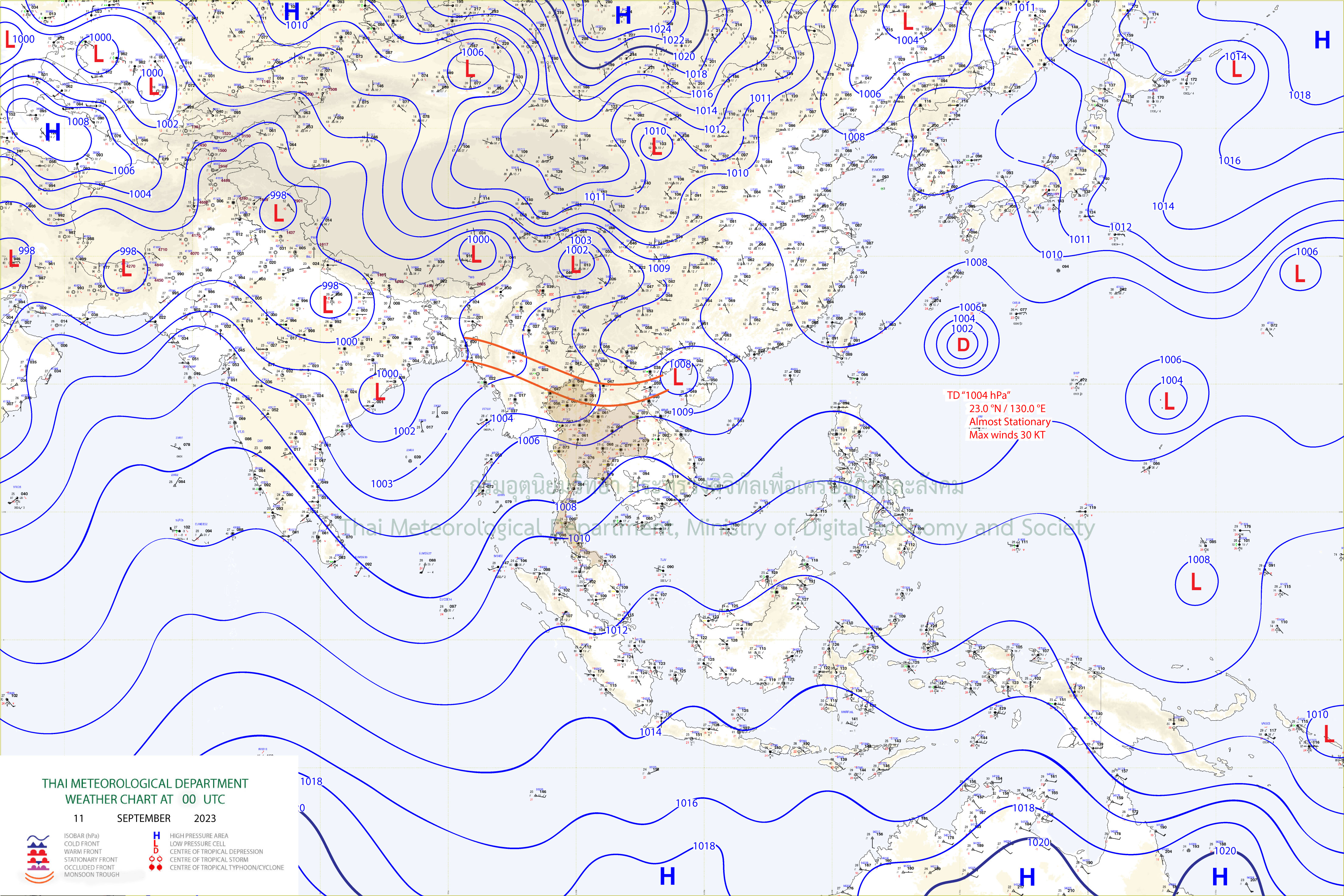 เดือนกันยายน 2566 ประเทศไทยได้รับอิทธิพลจากร่องมรสุม (สัญลักษณ์